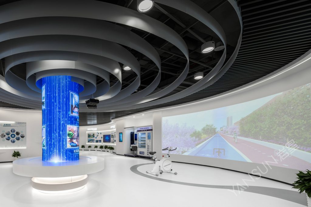 海智未來社區(qū)展廳位于浙江省寧波市杭州灣新區(qū)海智社區(qū),展廳面積約840平方米,作為展示寧波“未來社區(qū)”建設(shè)理念的窗口,集中展示未來社區(qū)“三化五場景”的建設(shè)規(guī)劃與成果,是訪客了解未來社區(qū)打造概念與智慧服務(wù)等資訊的第一場所。展廳通過當(dāng)代設(shè)計語言結(jié)合多媒體互動的展陳手段,打造出一個沉浸式體驗的科技智慧展館。